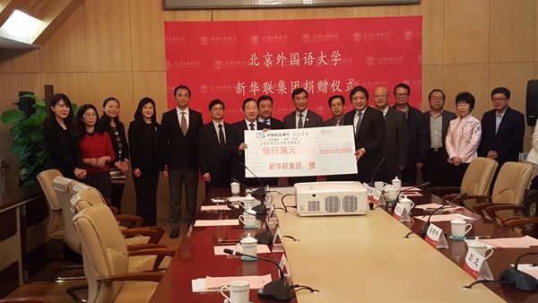 2016年12月20日上午,新華聯(lián)集團在北京外國語大學行政樓舉行捐贈簽約儀式,向北京外國語大學捐贈5000萬元,用于支持該校的發(fā)展建設。
